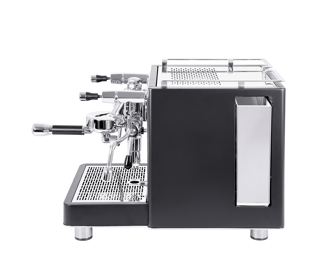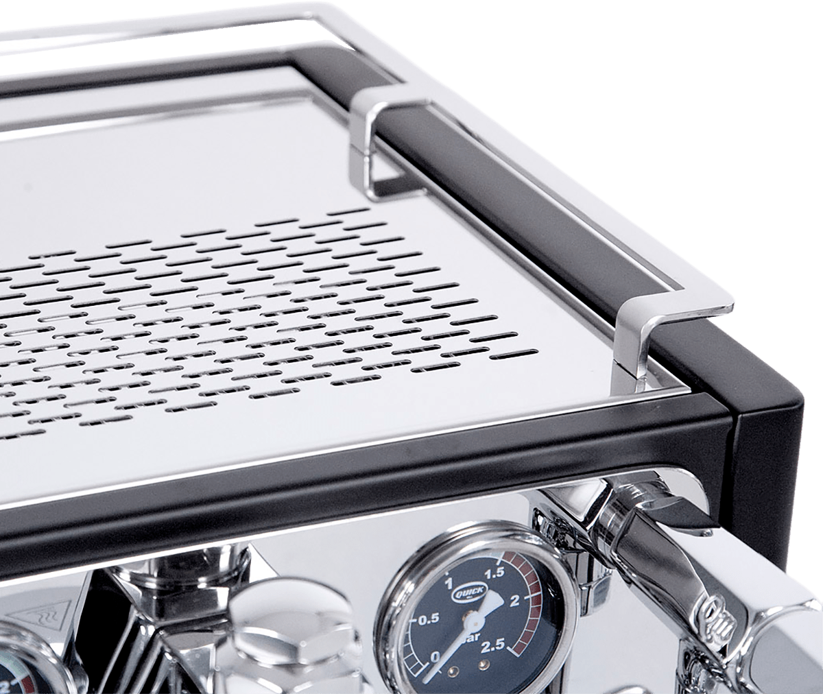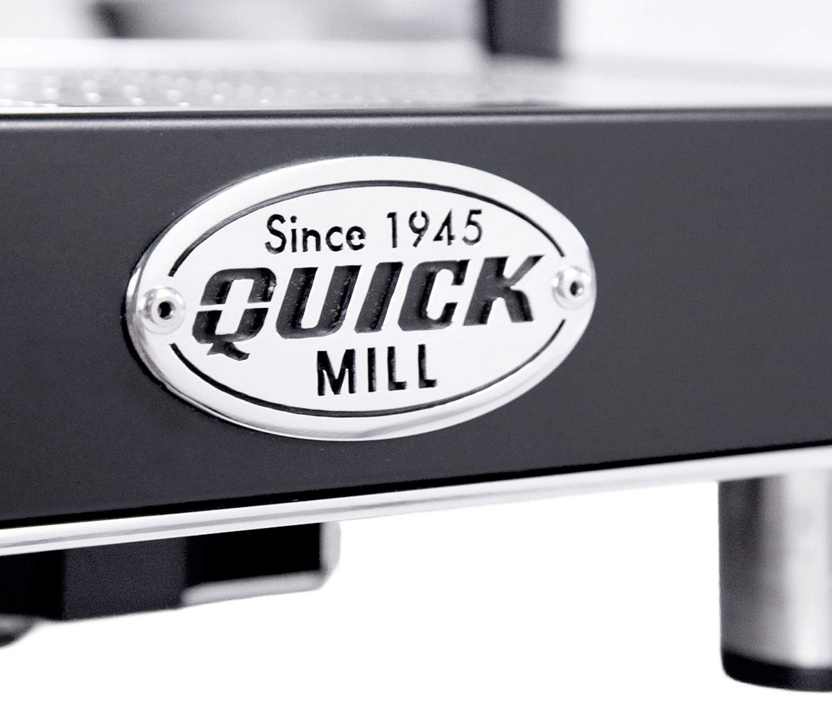Construção totalmente em aço inoxidável com detalhes em preto profundo, botões joystick e grupo de preparação Quick Mill proporcionam uma expressão visual profissional que se adapta tanto a cozinhas como a locais de trabalho.
