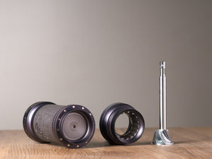 - Mecanismo de Ajuste Fino: O K-Ultra oferece um sistema de ajuste mais preciso do que o Moinhos da série K, com 10 números e 100 cliques por rotação. Cada clique move a mó 20 mícrons, dando-lhe controlo detalhado sobre o tamanho da moagem.
