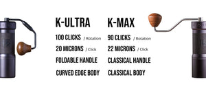 - Design Elegante e Confortável: Com um corpo arredondado e arestas curvas, o K-Ultra oferece uma pega confortável e uma experiência de moagem suave. Perfeito tanto para entusiastas de café como para baristas profissionais.