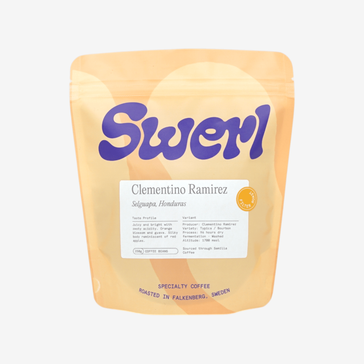 Perfil de sabor: Suculento e luminoso – flor de laranjeira, goiaba e maçã vermelha com acidez fresca e corpo sedoso