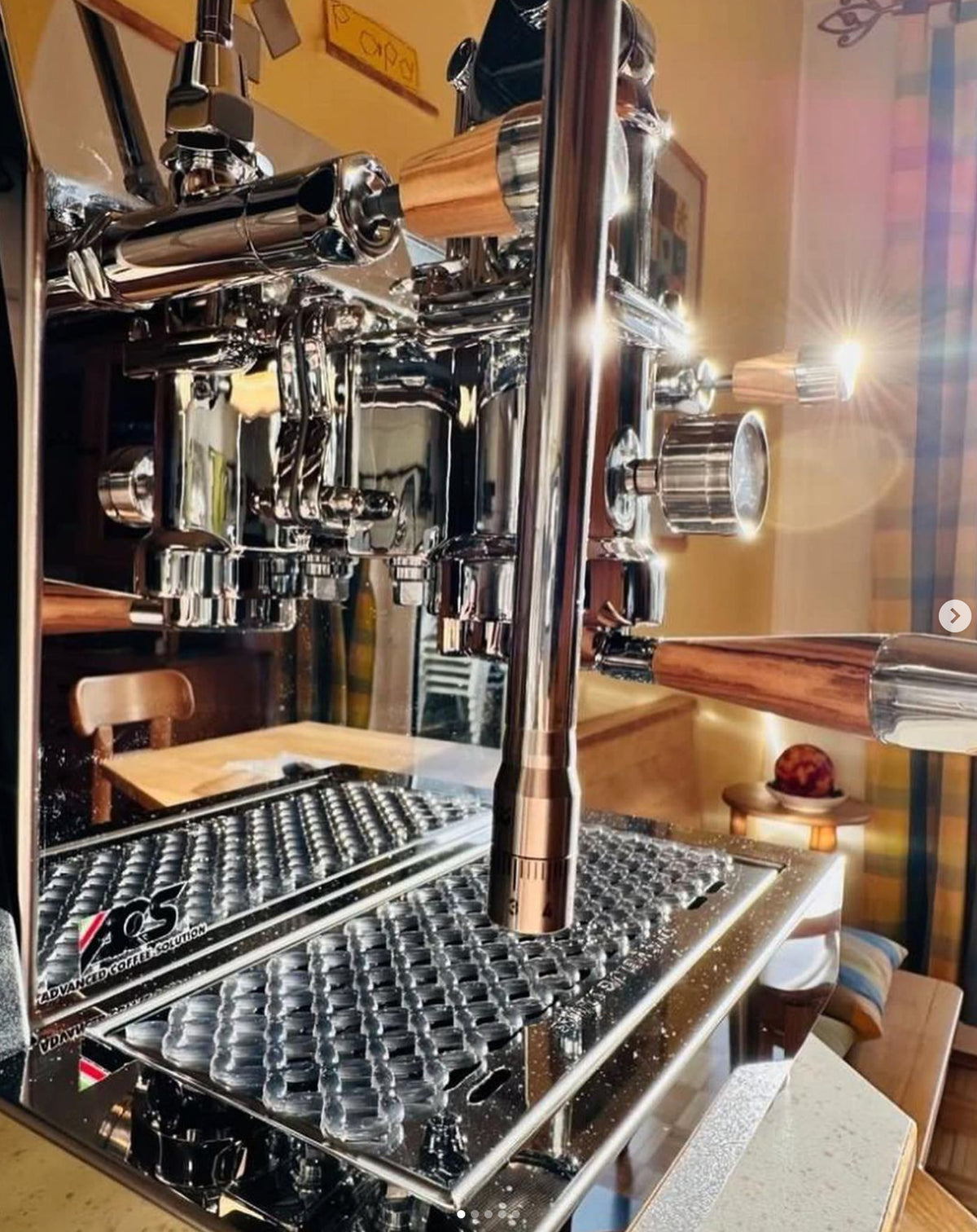 1 porta-filtro sem fundo portafilter, 1 porta-filtro simples portafilter, 1 porta-filtro duplo portafilter, alavanca do grupo, saco com várias peças de reposição para o grupo, ACS tamper, escova, pano de microfibra ACS , doseador de anel ACS , Milk Puly, conexão flexível para água, mangueira de PTFE para drenagem da bandeja de gotejamento.