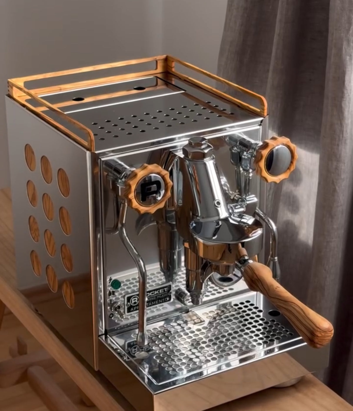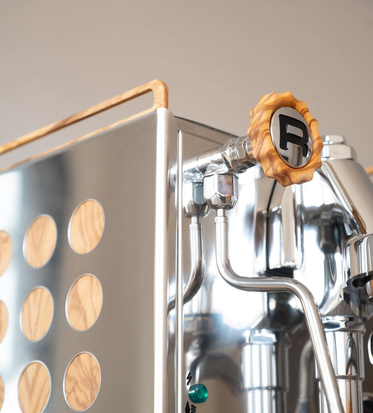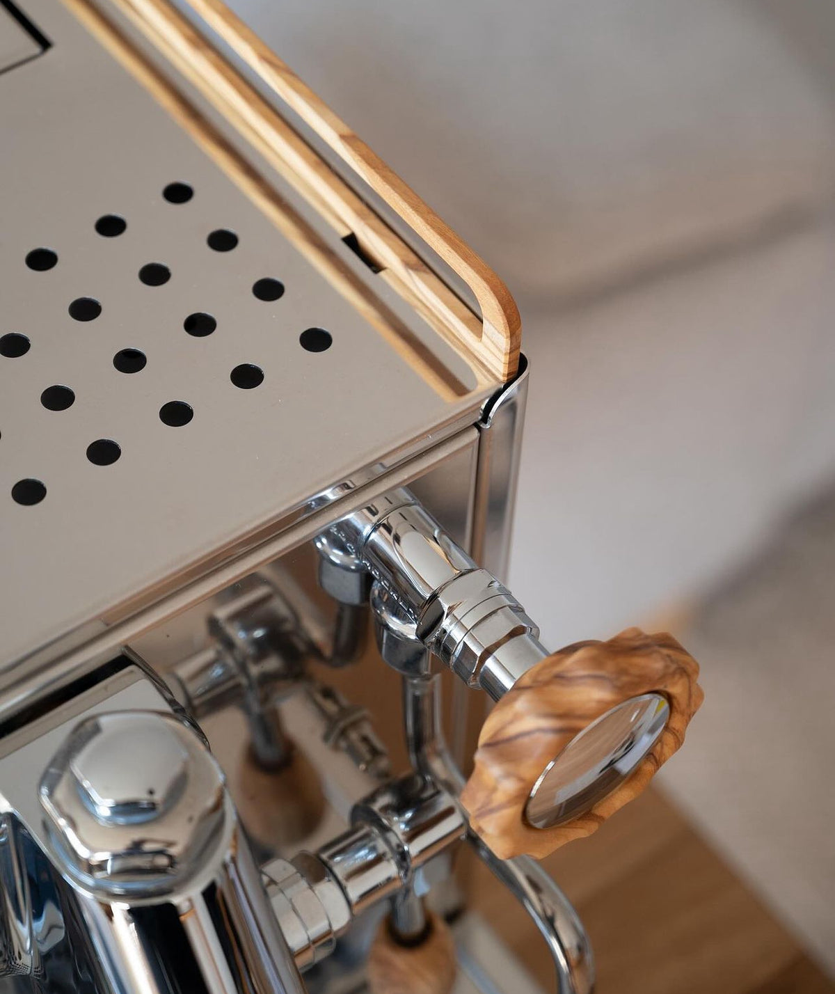 Faça a sua máquina de espresso única com painéis laterais personalizados de Wiedemann Manufuktur para a sua La Marzocco GS3 MP/AV. Escolha entre azevinho, nogueira, carvalho e carvalho escuro. Os painéis laterais são feitos de madeira maciça com acabamento em óleo duro.