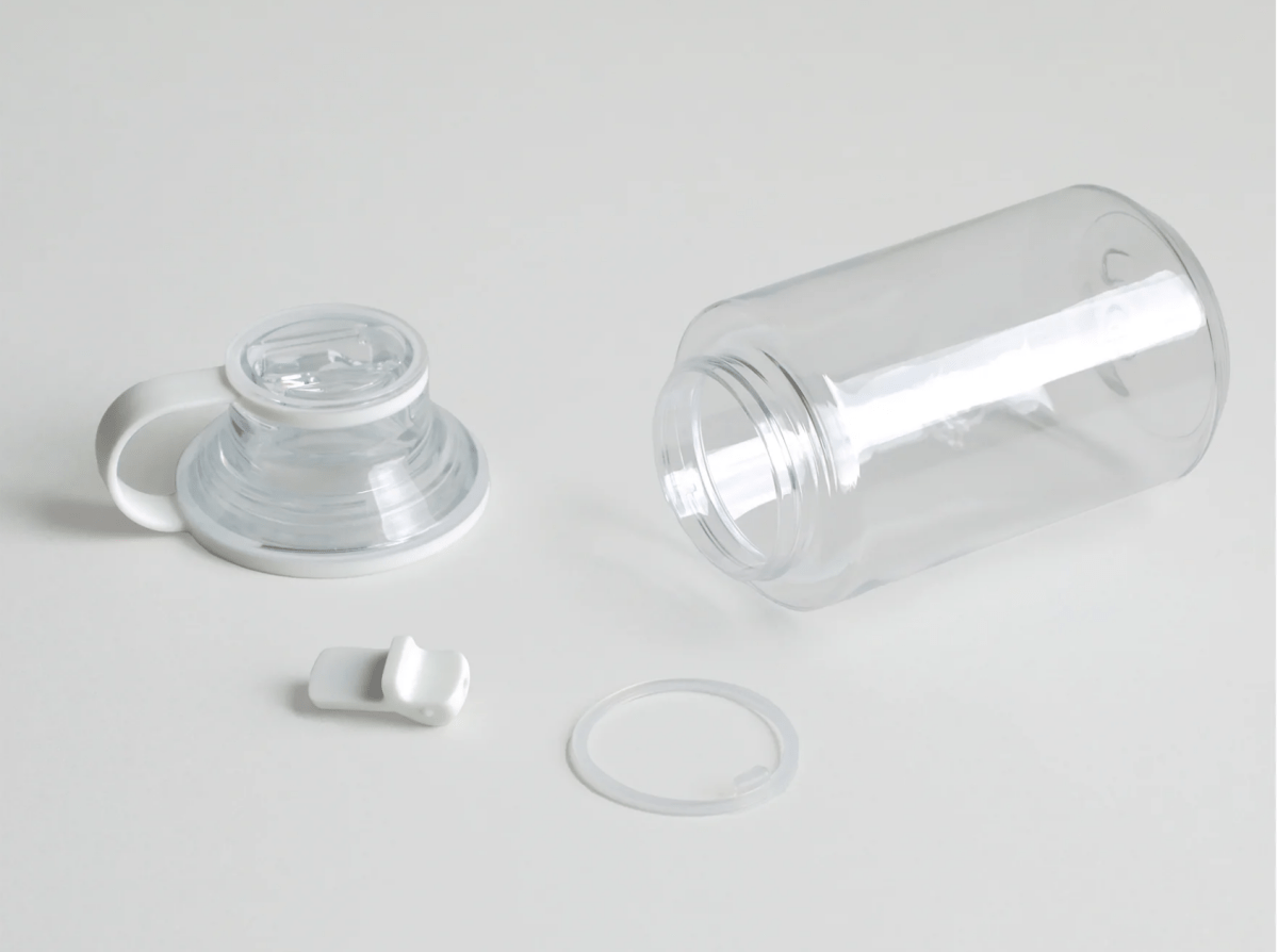 A garrafa possui uma alça macia e confortável que proporciona uma pegada confortável, mesmo quando a garrafa está cheia. O canudo facilita beber com uma mão – basta abrir a tampa redonda e tomar um gole sem perder o foco na atividade.