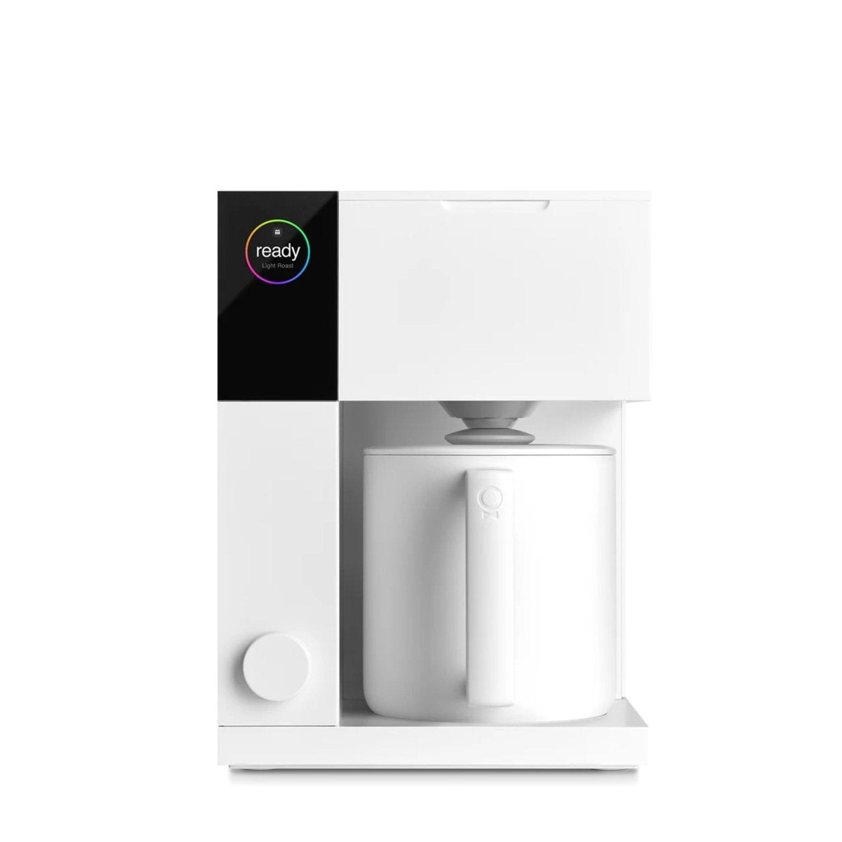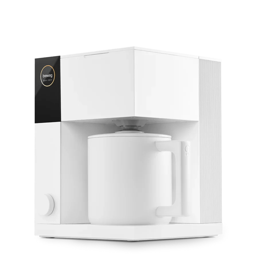 O Fellow Aiden Brewer em branco gelo pour-over preparo — aperfeiçoado e automatizado. Projetado para quem aprecia um ótimo café, mas não quer o incômodo do preparo manual, o Aiden oferece controle total sobre as variáveis mais importantes: temperatura, tempo, floração e saturação.
