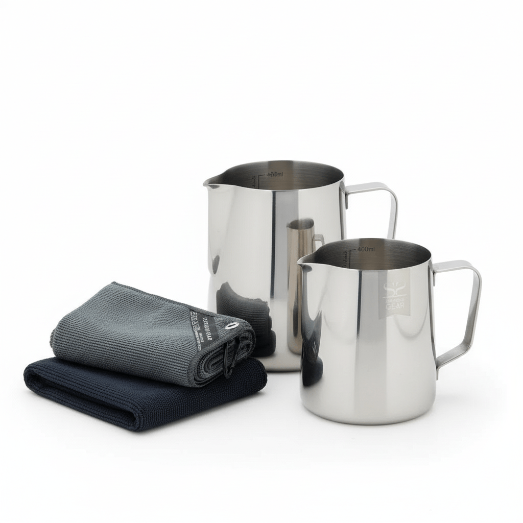 Barista Kit Inicial - 2 Jarras de Leite & 3 Panos de Barista