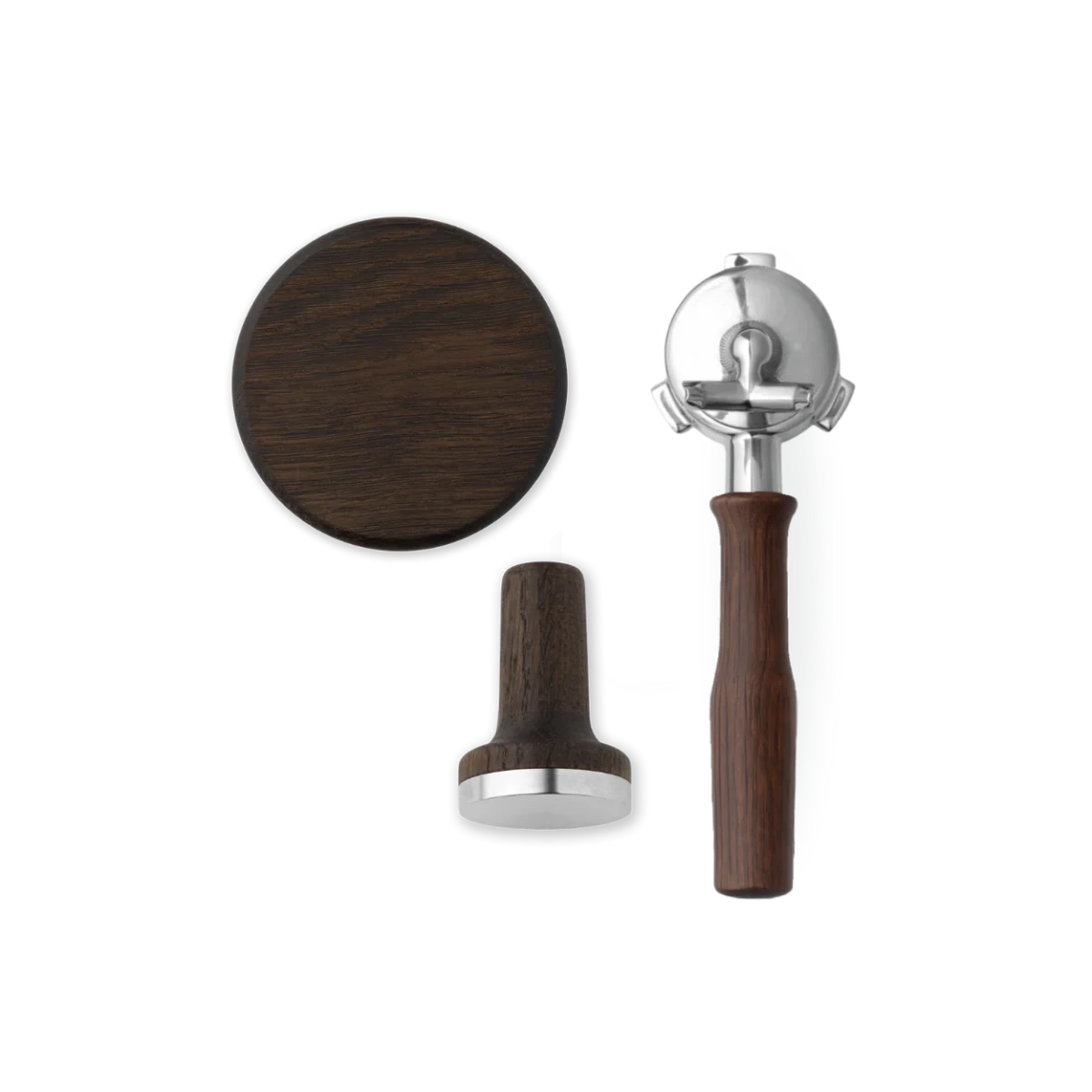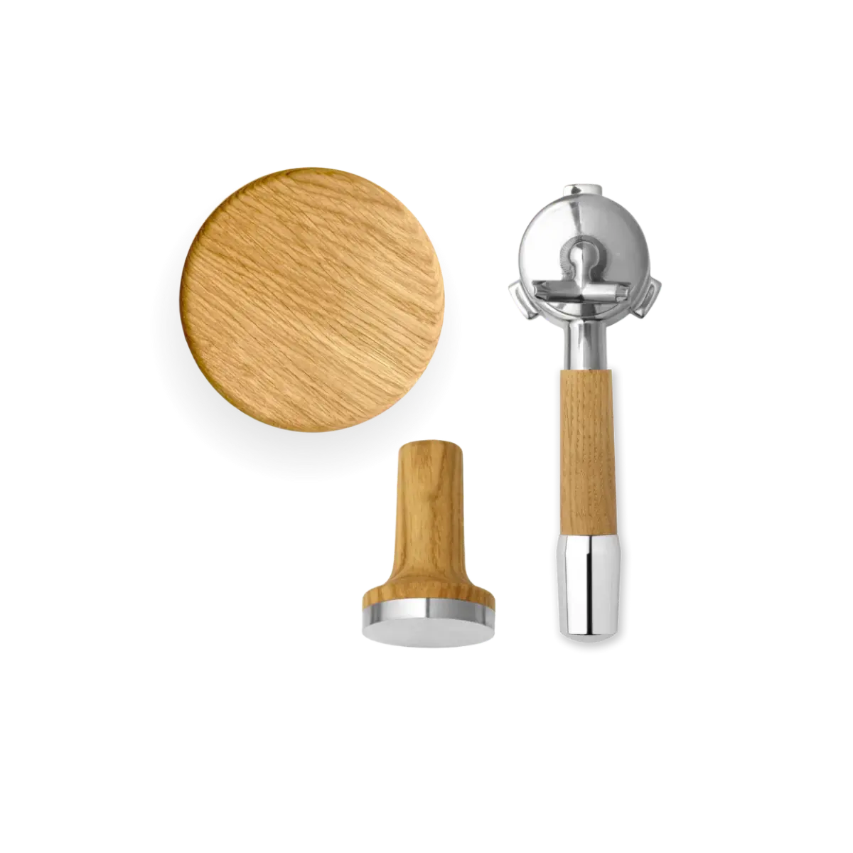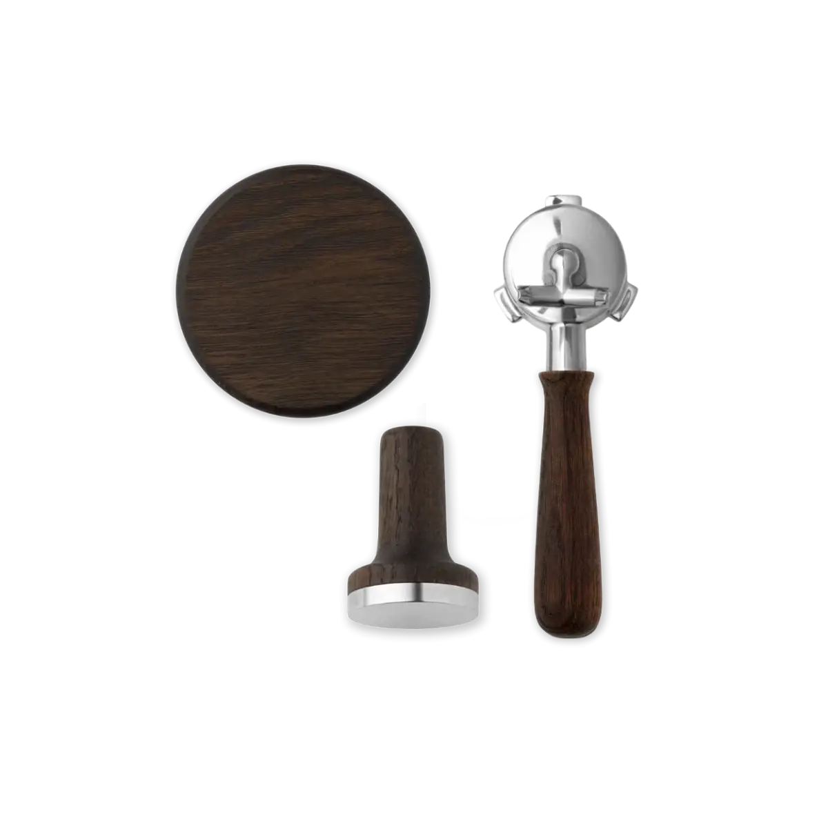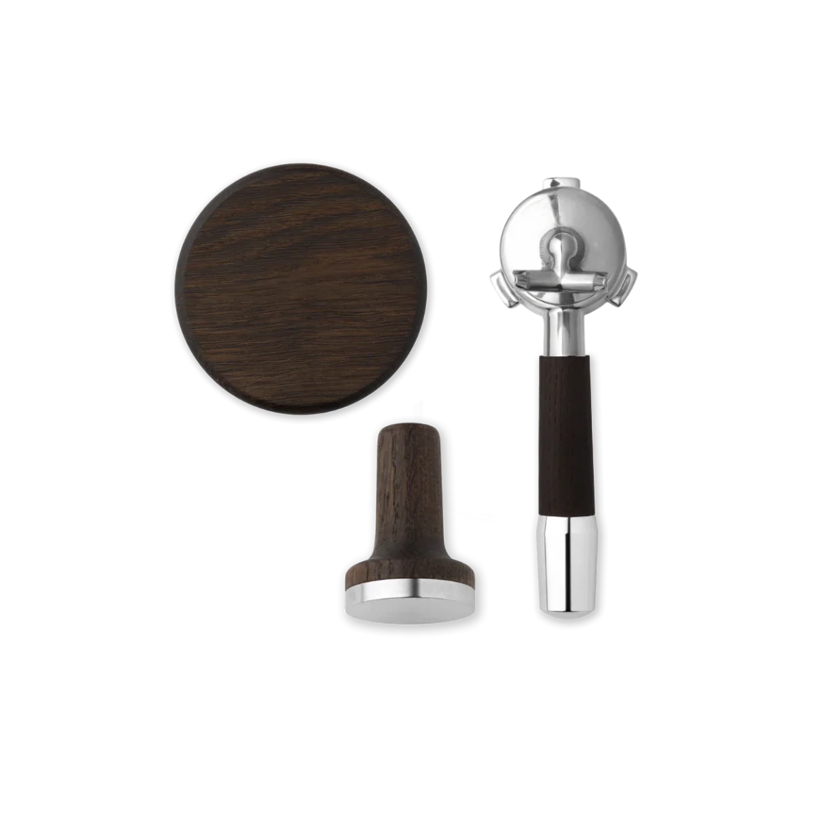 O pacote inclui um calcador de café magnético com ajuste de 53,5 mm, uma tampa para o recipiente de grãos com manípulo ergonómico em madeira e um porta-filtro com estilo de manípulo à escolha, moderno ou clássico. Juntos, os componentes criam uma sensação uniforme e mais sofisticada em torno da sua preparação diária de espresso.