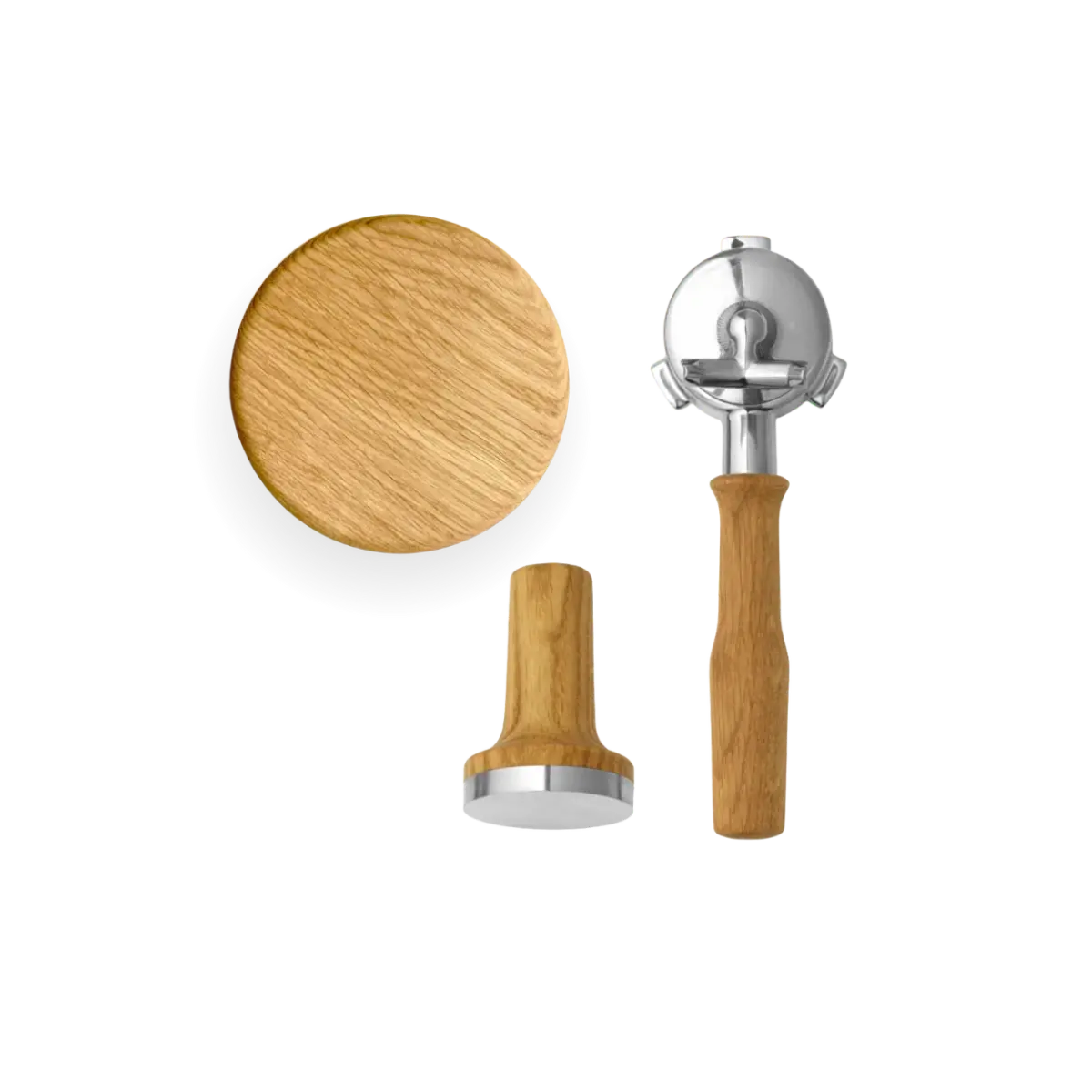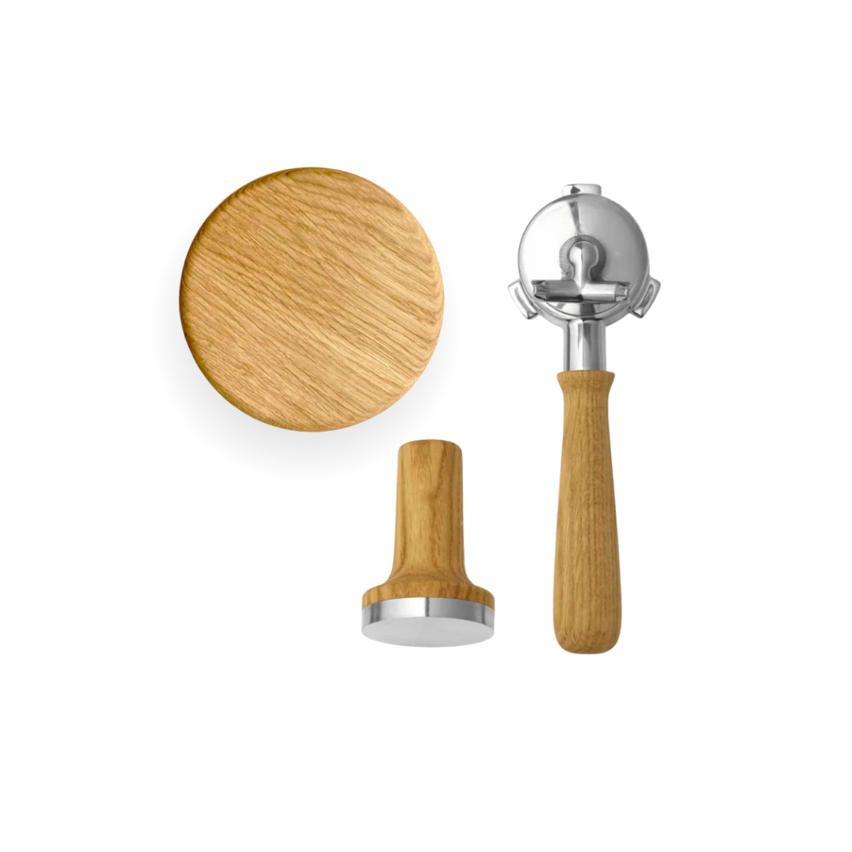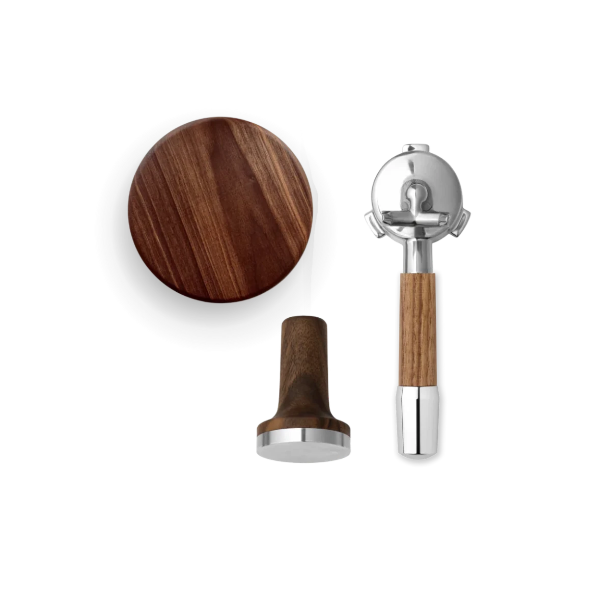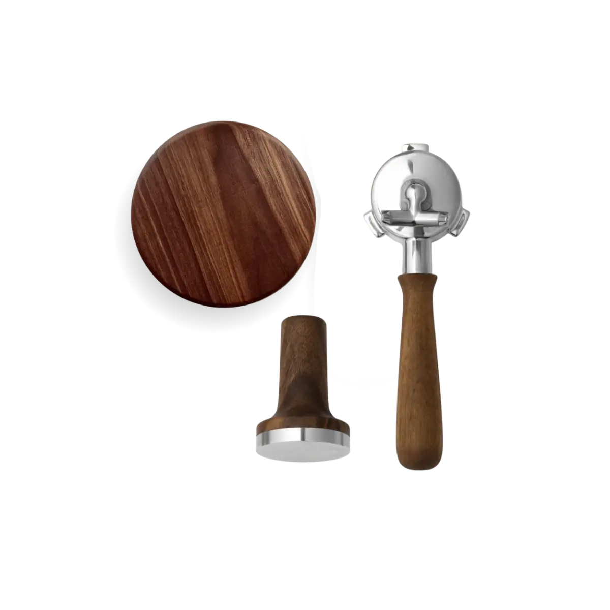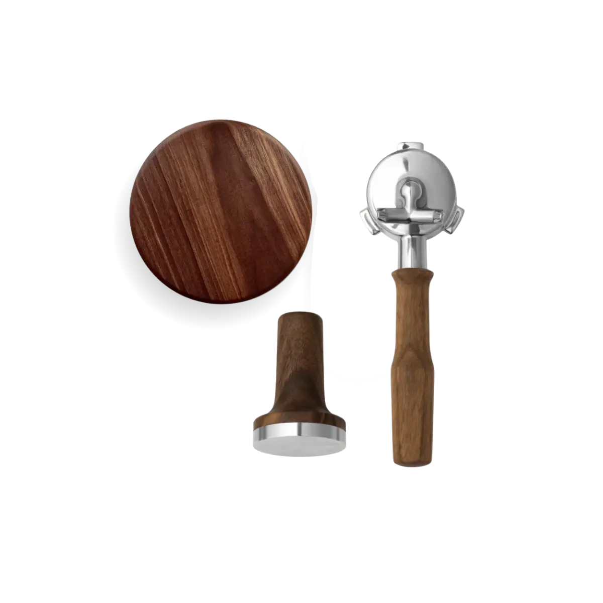 O pacote inclui um calcador de café magnético com ajuste de 53,5 mm, uma tampa para o recipiente de grãos com manípulo ergonómico em madeira e um porta-filtro com estilo de manípulo à escolha, moderno ou clássico. Juntos, os componentes criam uma sensação uniforme e mais sofisticada em torno da sua preparação diária de espresso.
