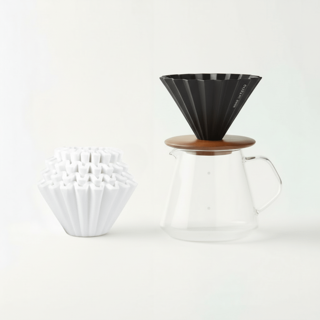 - A estrutura estriada do dripper Origami proporciona extração uniforme e circulação de ar ideal