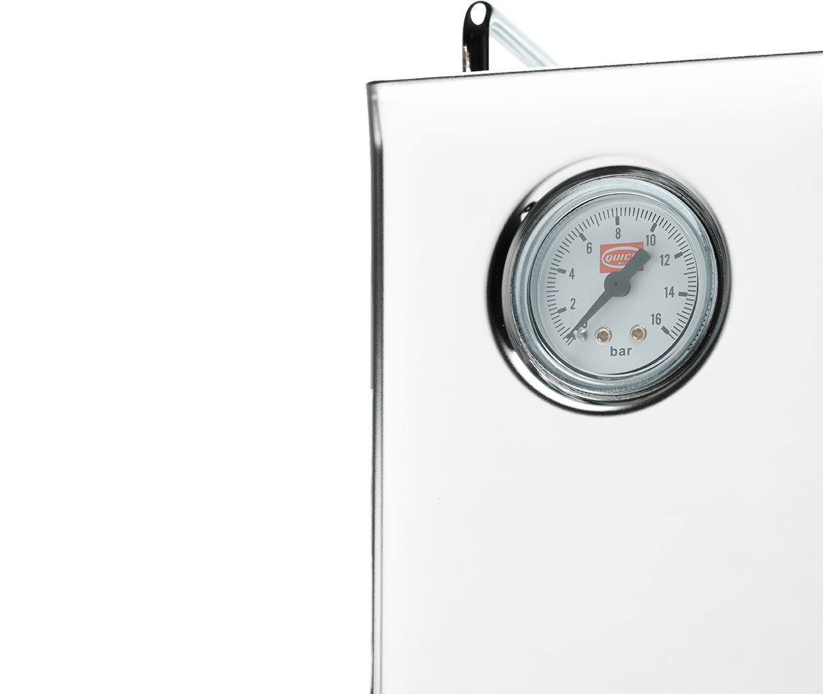 O manómetro integrado (0–16 bar) mostra a pressão de extracção em tempo real e ajuda a ajustar a moagem, dose e compactação para uma dose ideal.