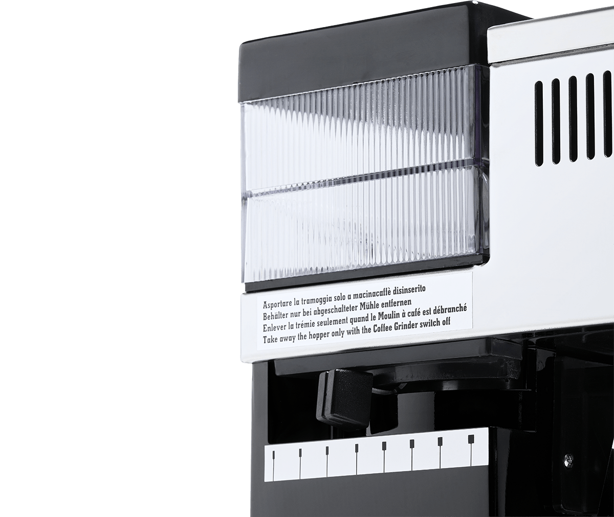 Moinho: Moinho integrado com discos planos de 43 mm; ajuste gradual da moagem; botão de dosagem