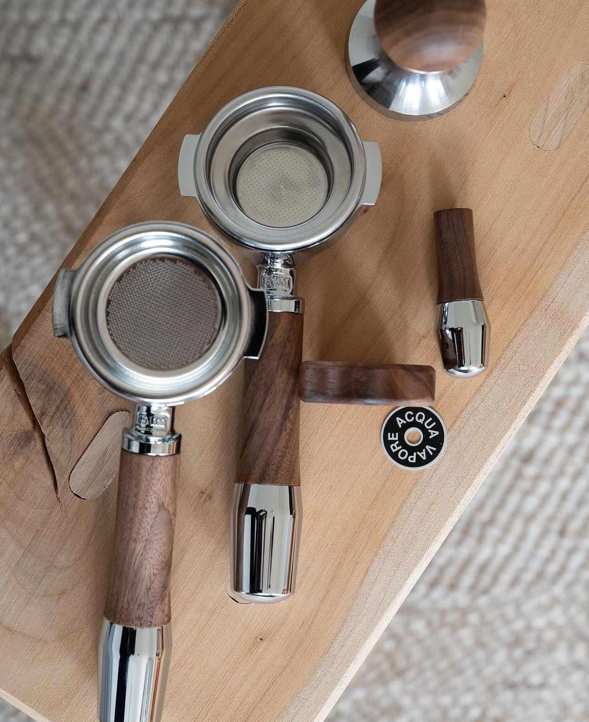 A nossa pega com o design "Elegant" vem com cabeças de portafiltro originais da ECM, enquanto todos os outros portafiltros têm cabeças de portafiltro em aço inoxidável. Todos os dias, a nossa pega proporciona uma experiência tátil excecional. A nossa madeira é tratada manualmente com óleo duro orgânico, para preservar a sensação natural da madeira.
